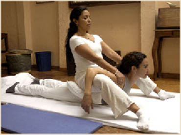 Desde el ámbito físico, el Masaje Tradicional Tailandés, propone estiramientos selectivos basados en las posturas de Yoga. Si miramos atentamente los estiramientos propuestos, veremos en ellos las típicas Asanas de yoga. Su fin, conseguir una mayor elasticidad muscular.